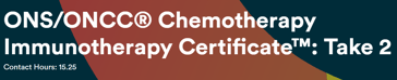 If you are unsuccessful in earning NCPD and wish to pursue additional attempts, you will need to purchase and register for access to a new course. You can identify the course to be purchased by looking for the "Take 2" verbiage in the course title. See an example below from our ONS/ONCC Chemo Certificate course:
